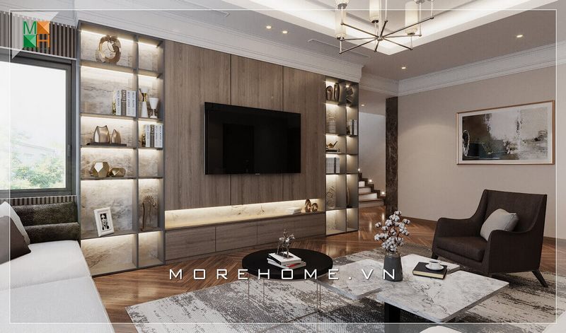 Thiết kế phòng khách sang trọng với nội thất phong cách hiện đại